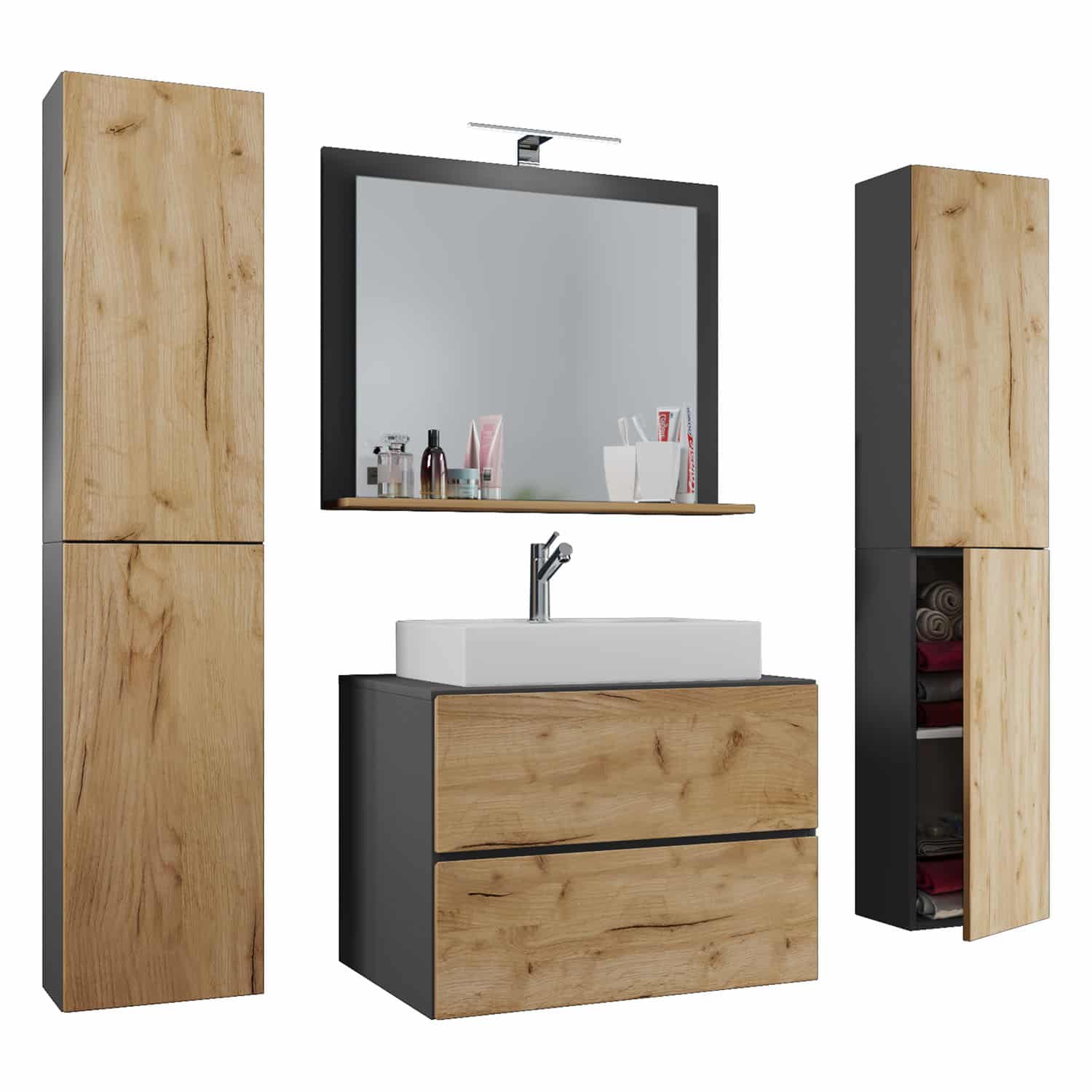 Lendas M badeværelsesmøbelsæt – spejlglas, keramik og antracitgrå og natur melamin (sæt af 5)