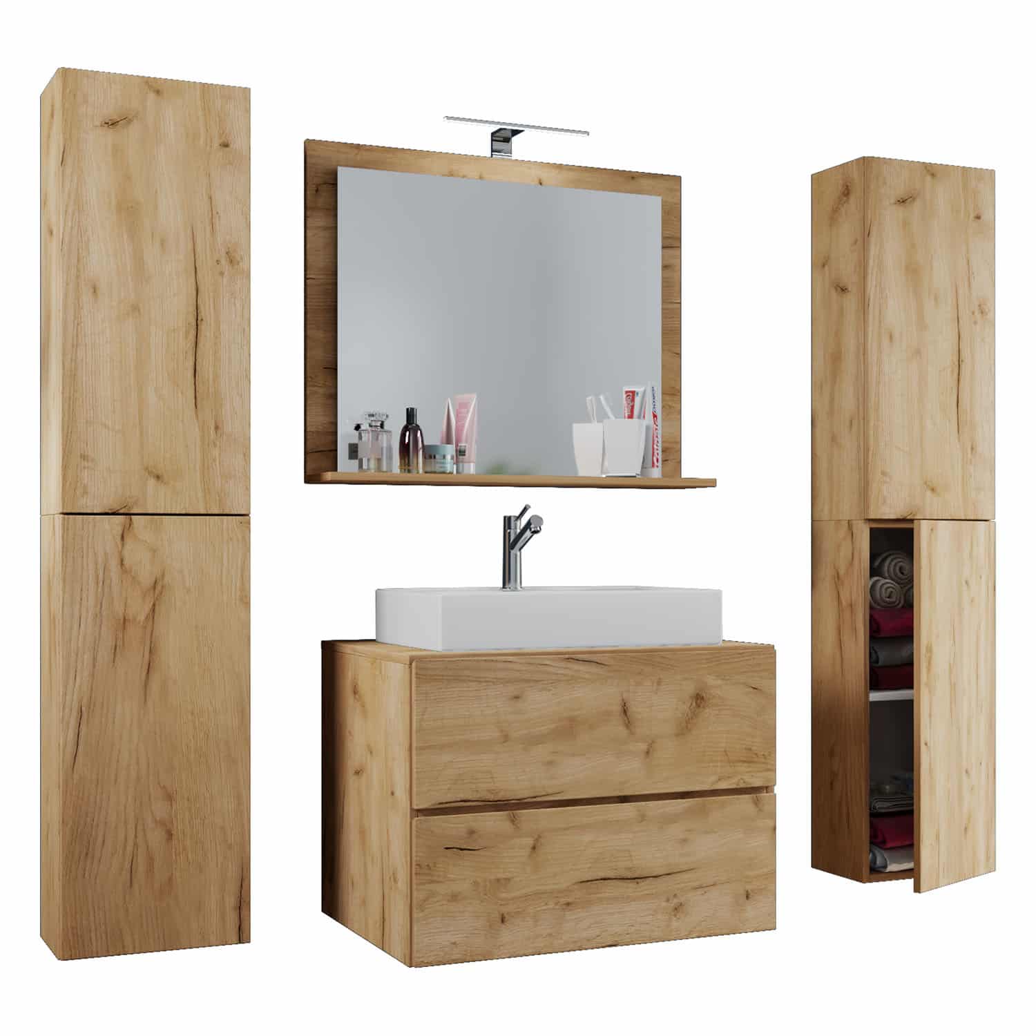 Lendas M badeværelsesmøbelsæt – spejlglas, keramik og natur melamin (sæt af 5)